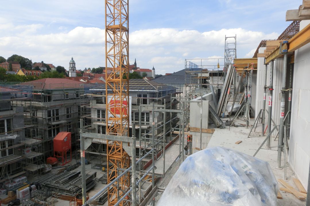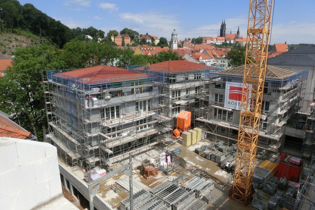 Unweit der historischen Altstadt von Meißen und in unmittelbarer Nachbarschaft der denkmalgeschützten – und bereits von uns sanierten ehemaligen Neumarktschule -, entstand auf einer ehemaligen Brachfläche ein neues Wohnquartier. Das Quartier verbindet eine moderne Blockrandbebauung mit einer aufgelockerten Bebauung mit Einfamilienhauscharakter.