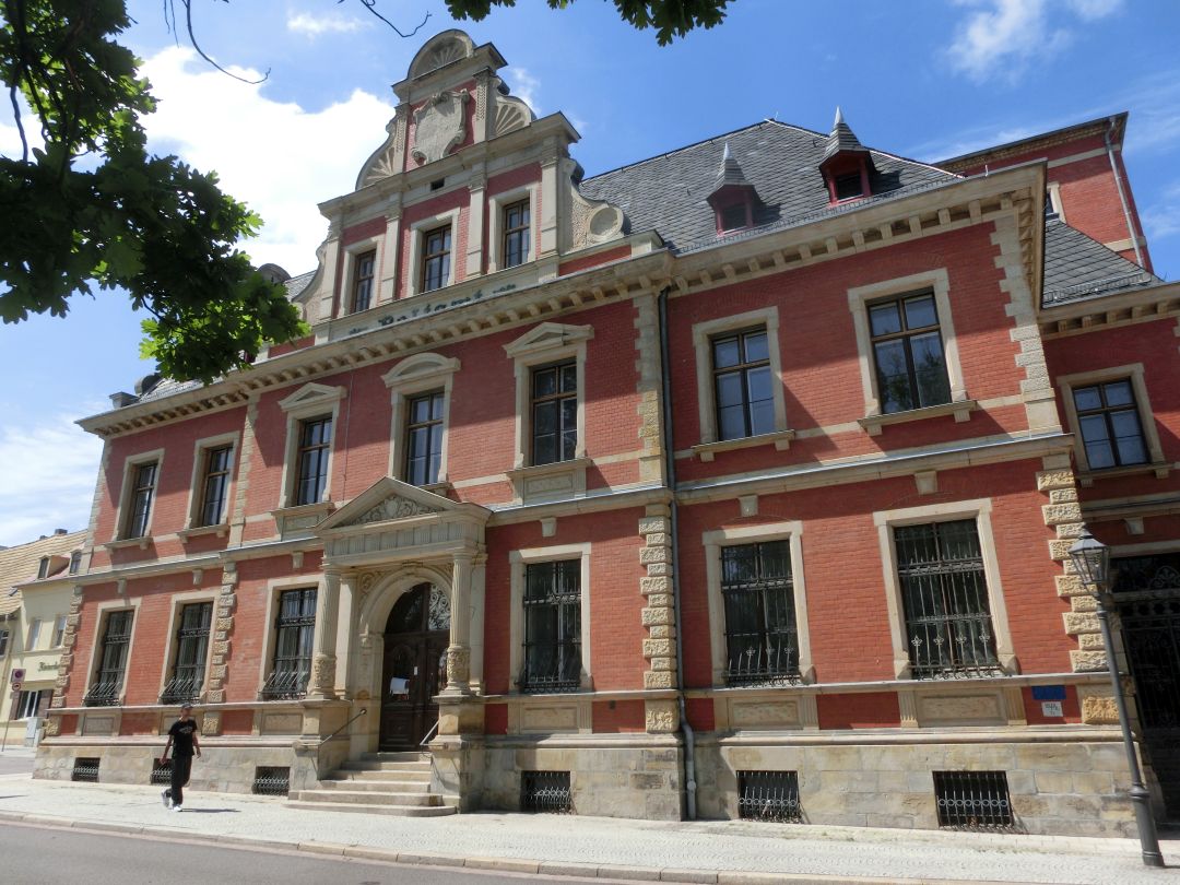 Bei dem Objektensemble, direkt am Schlosspark von Köthen, handelt es sich um einen Straßen- und platzbildprägenden Ziegelbau mit reicher Werksteingliederung, hohem Schweifgiebel sowie einem historischen Remisengebäude. Errichtet wurde das Ensemble zwischen 1883 und 1884 im Stil der Deutschen Renaissance und 1903 bis 1904 erweitert.