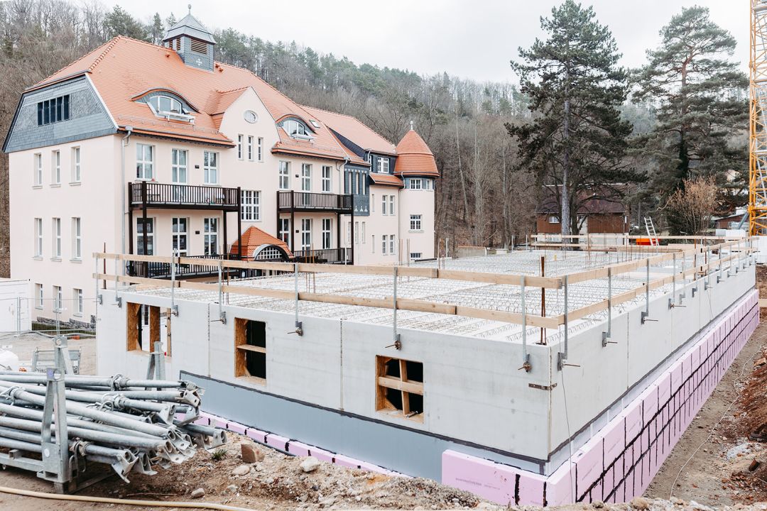 Im König-Albert-Park in Saalhausen werden zwei ehemalige Sanatorien denkmalgerecht und aufwendig saniert. Ergänzt wird das Ensemble durch den Neubau von zwei Mehrfamilienhäusern sowie eines Parkdecks. Eine lichtdurchflutete, moderne Architektur in Verbindung mit hochwertiger Raumausstattung und erhaltener Bausubstanz sorgt für eine erstklassige und behagliche Wohnatmosphäre.