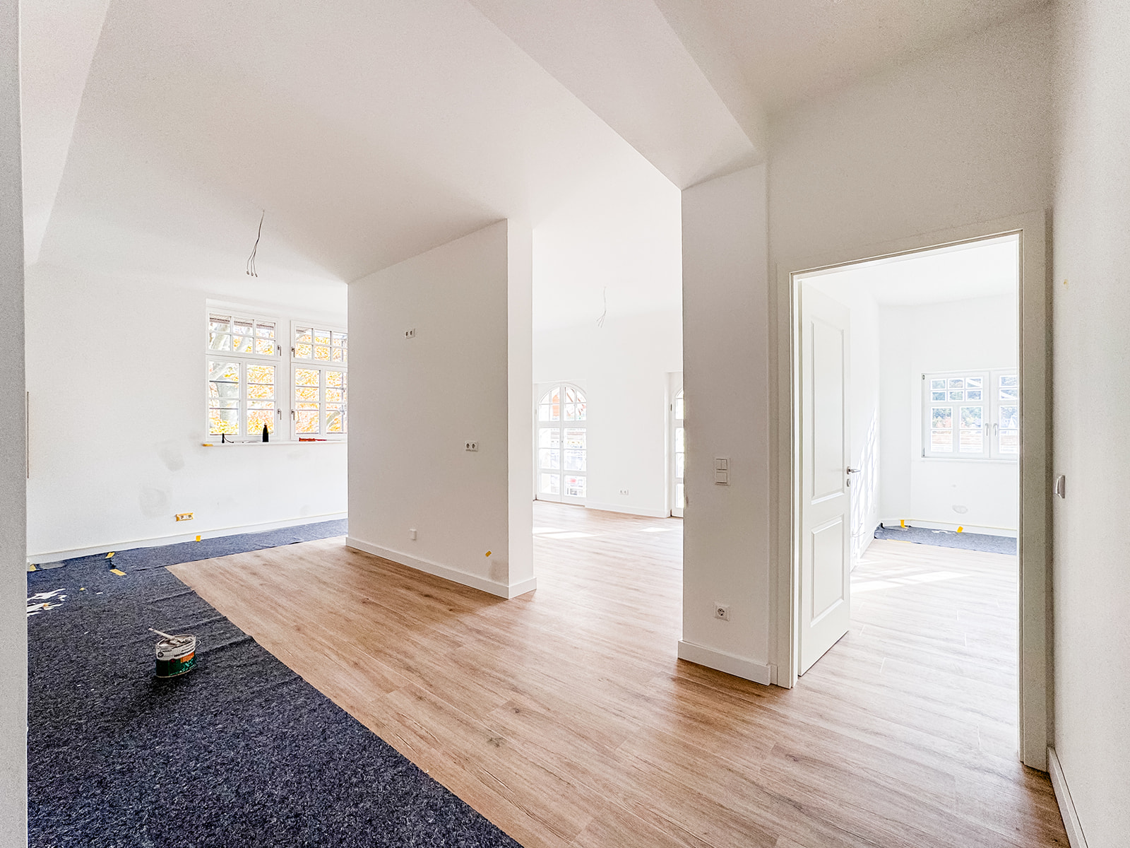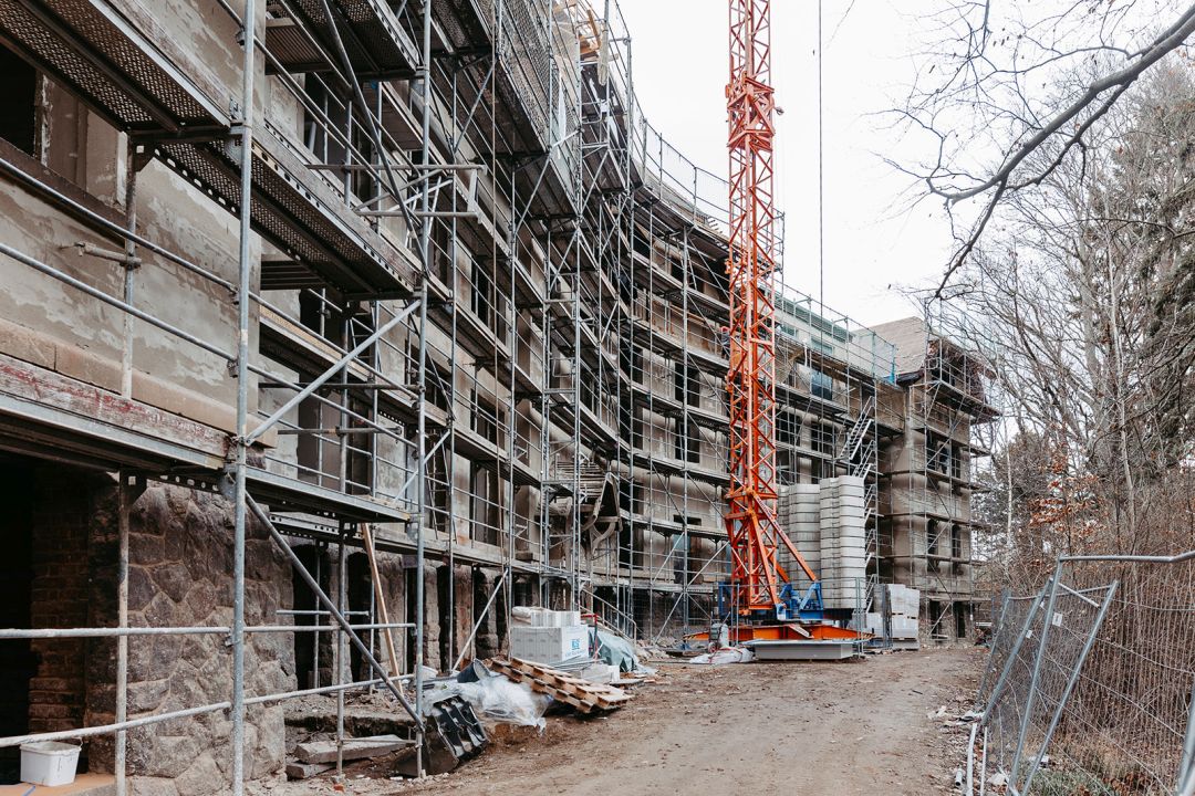 Insgesamt entstehen 90 Wohneinheiten. Besonderer Wert wird auf die hochwertige Neu- und Wiederherstellung der Parkanlage auf Grundlage historischer Pläne gelegt.